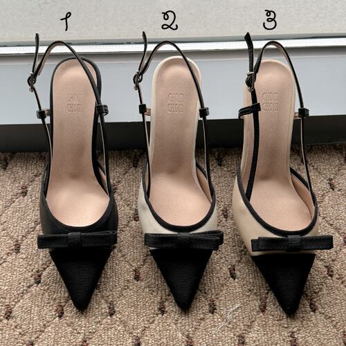 リボン 2トーン スリングバック 太めヒール きれいめパンプス !送料込み!
