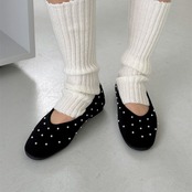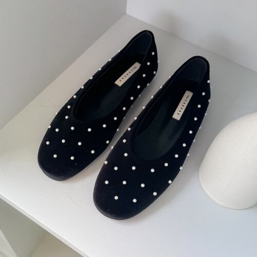 ラブリー パールビーズ ドット ベルベット風 フラットシューズ!送料込み!