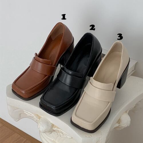 *チャンキーヒールと全体のフォルムがかわいい、ローファーパンプスです。