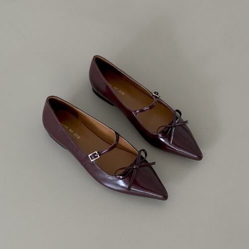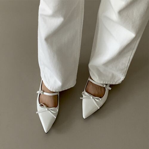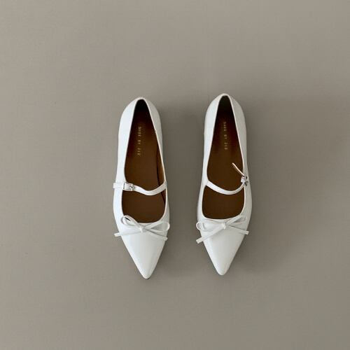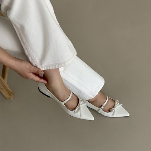 とんがりつま先 リボン 甲ストラップ エレガント フラットシューズ !送料込み!