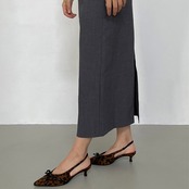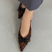 無地orレオパード柄 リボン スリングバック ローヒール パンプス !送料込み!