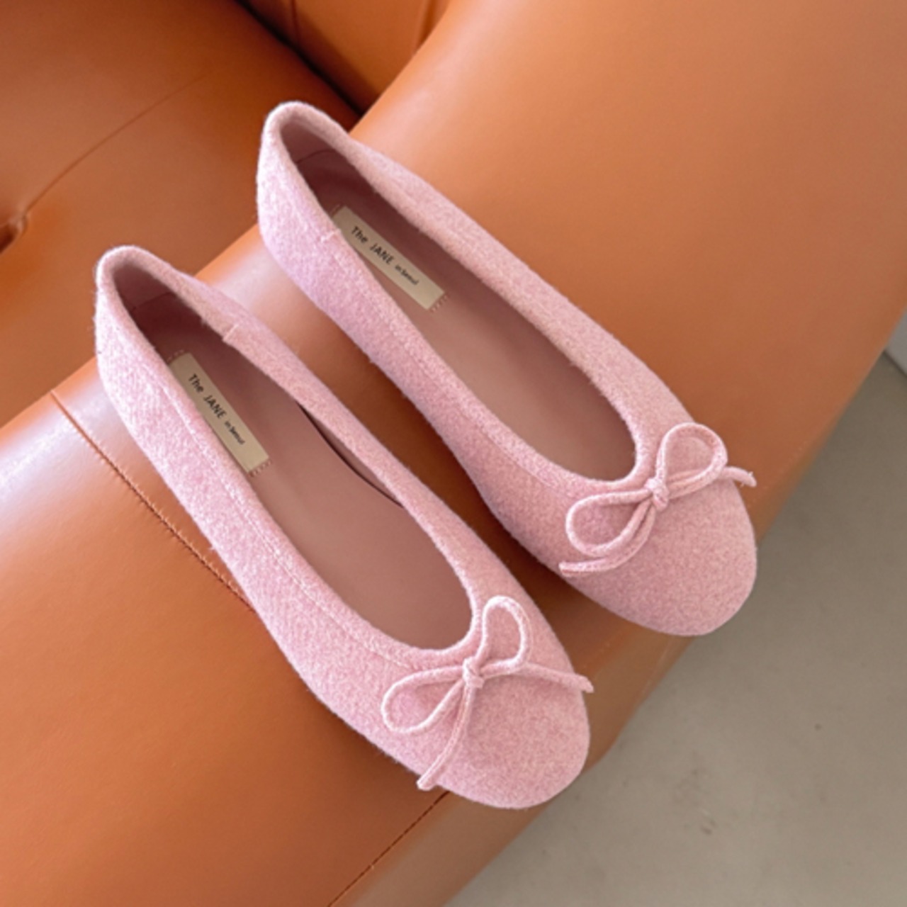 ラブリー ラウンドトゥ リボン ウール素材 フラットシューズ !送料込み!
