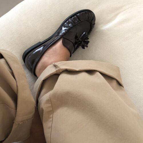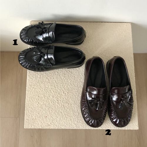 *つま先のくしゅくしゅがかわいい、タッセルローファーです