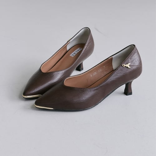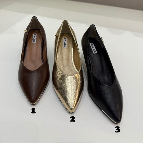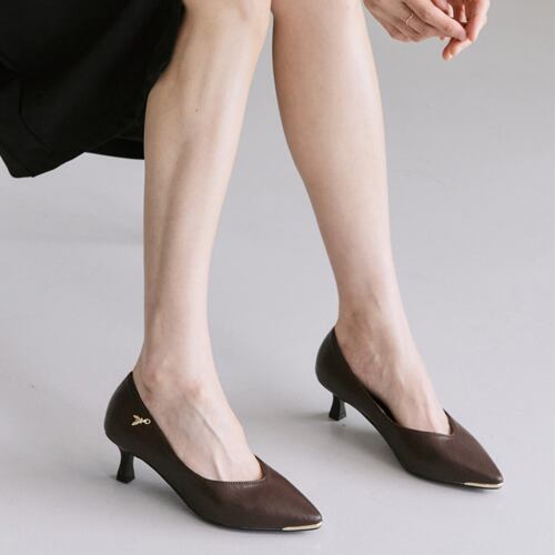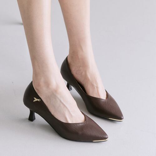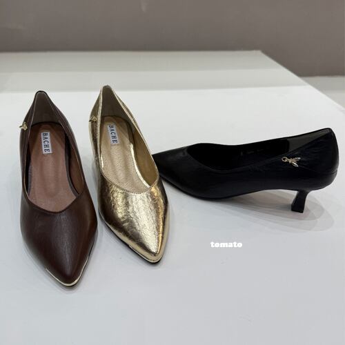 韓国 つま先金属 サイドにワンポイント ローヒール パンプス !送料込み!