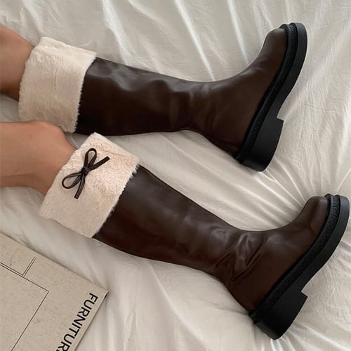 合皮 リボン ファー 厚底 かわいい ロングブーツ !送料込み!
