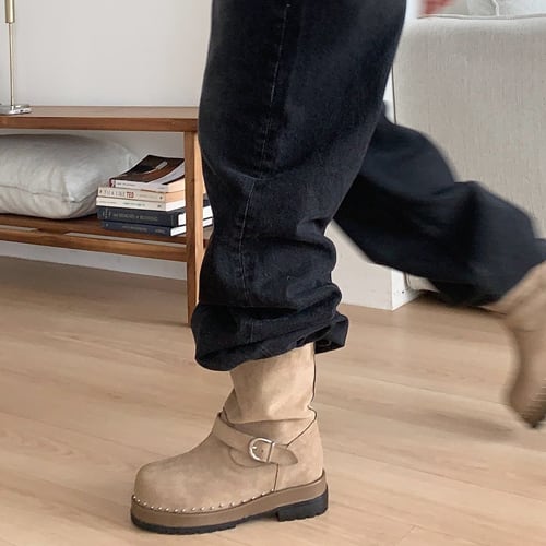 韓国ファッション 3cmヒール リベットワンポイント ベルト ミドルブーツ !送料込み!