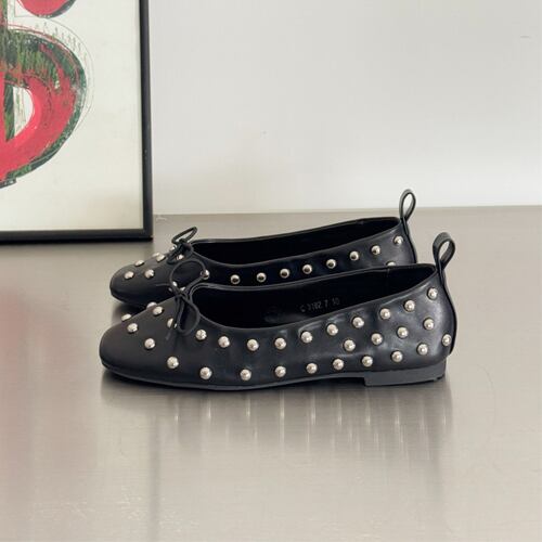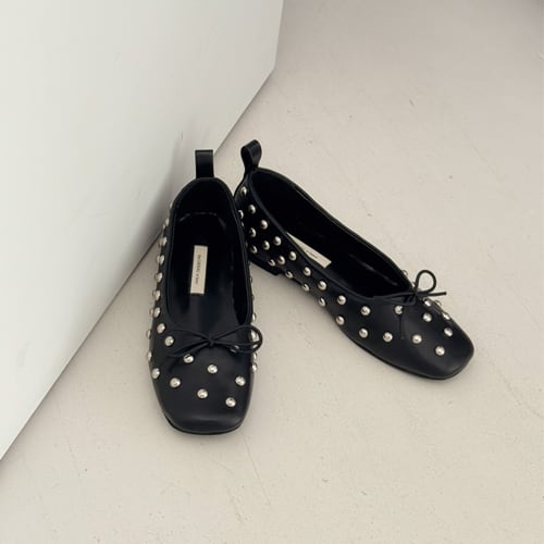 リボン スクエアトゥ リベット 個性的 フラットシューズ !送料込み!