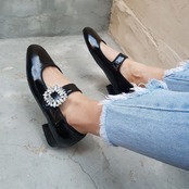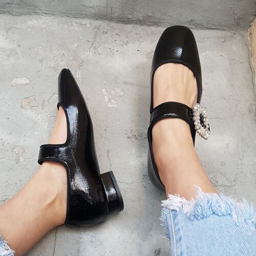 *キュービックバックルがポイントのメリージェーンスタイル フラットシューズです
