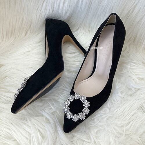 フェイクスエード ビジューバックル ピンヒールパンプス !送料込み!