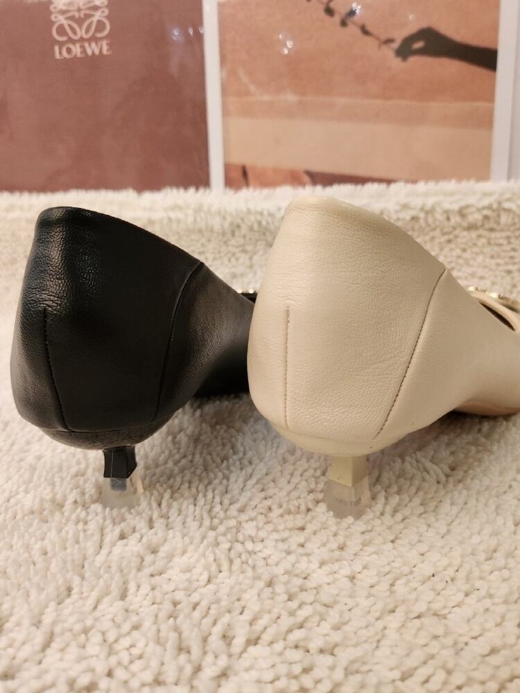 *おしゃれロゴがポイントのローヒールパンプルです