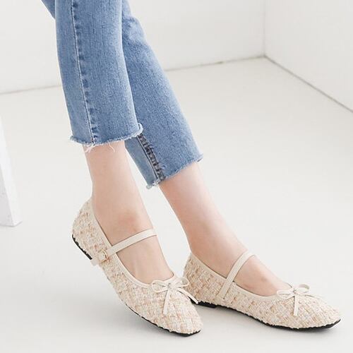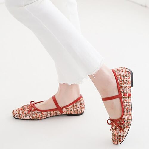 ツイード 細いリボン 甲ストラップ フラットシューズ !送料込み!