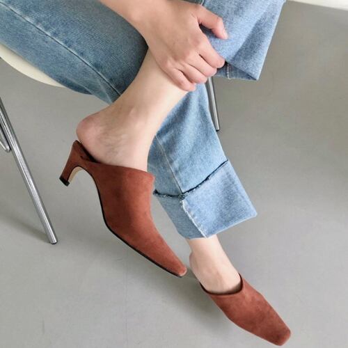 スクエアトゥ 合皮orスエード ブローファーミュール パンプス !送料込み!