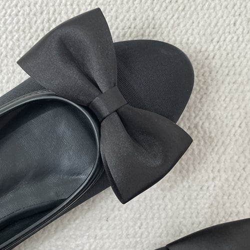 エレガント オールブラック リボン フラットシューズ!送料込み!