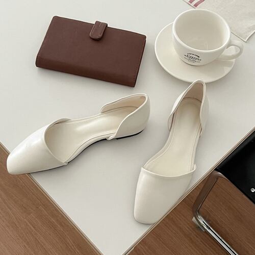 サイドオープン シンプル スクエアトゥ ぺたんこフラットシューズ!送料込み!