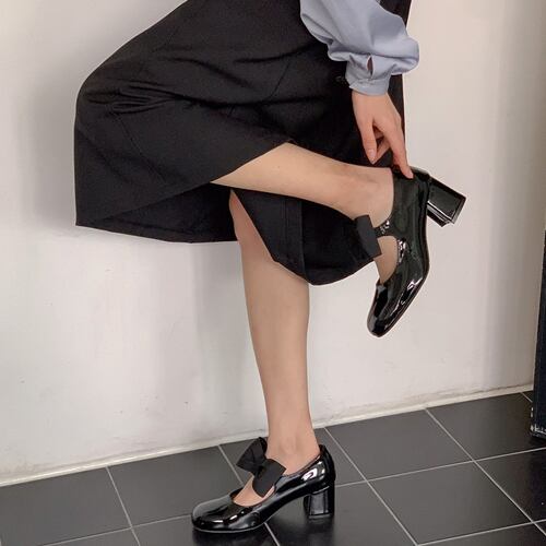 チャンキーヒール 甲リボンがキュート スクエアトゥ パンプス!送料込み!