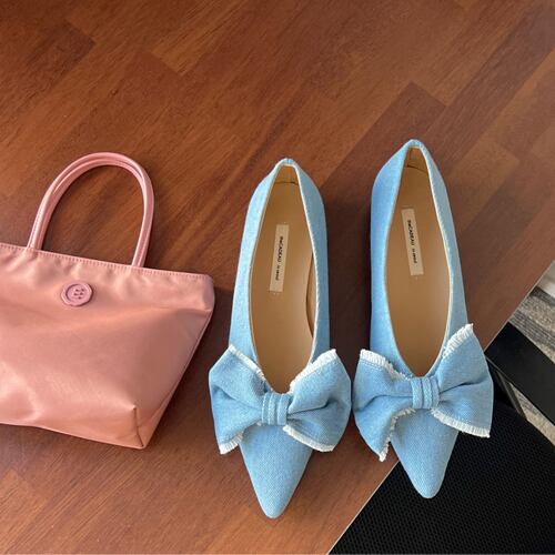 とんがりつま先 リボン かわいい ローヒール フラットシューズ!送料込み!